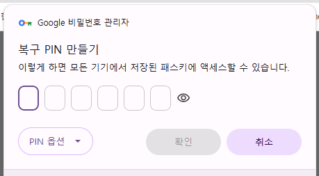 그러면 복구 pin만들기가 뜨고