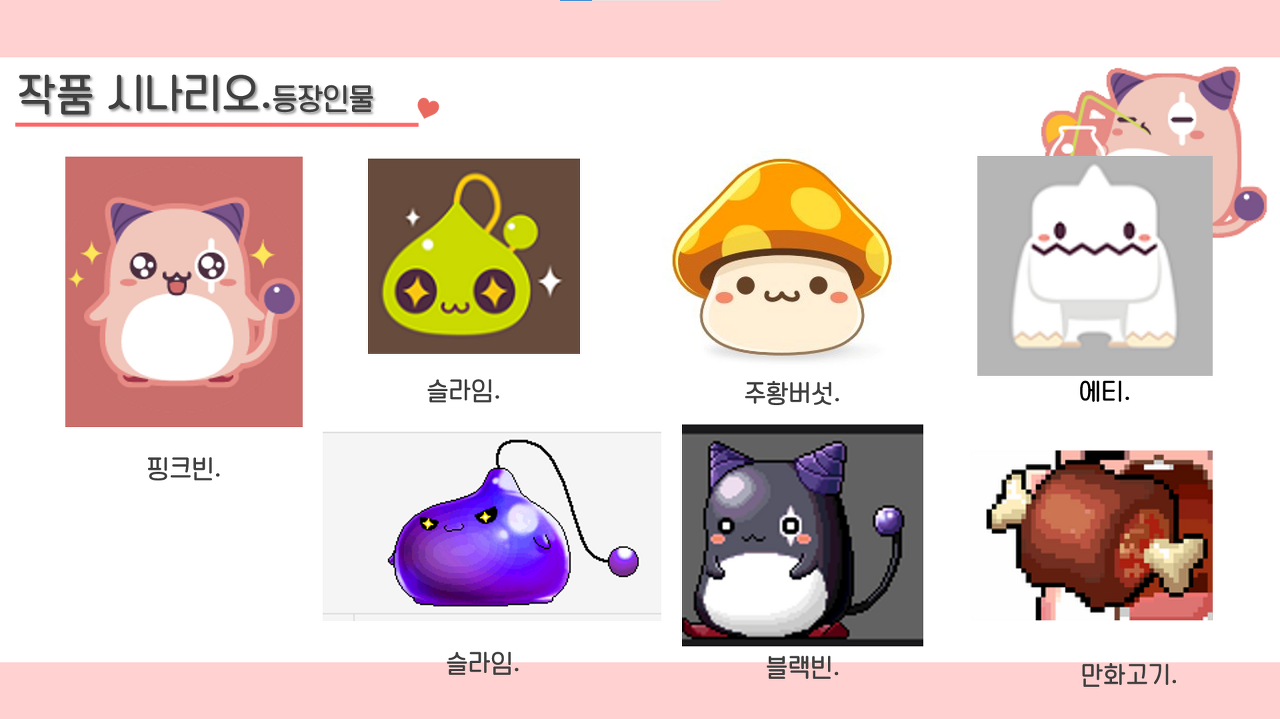 3D MAX를 이용한 기말 프로젝트 제작으로, 평소 귀여워 하던 핑크빈을 제작하고 싶어 메이플 몬스터 몇개를 제작하기로 했습니다.