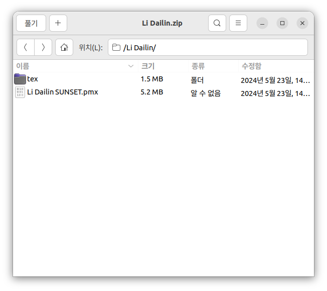 다운 받으면 압축파일 안에 tex파일과 pmx파일이 들어있는데