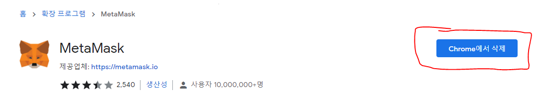 그러고 확장 프로그램으로 들어간 MetaMask를 눌러준다.