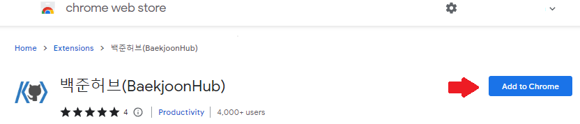 - 먼저 크롬에서 백준허브를 검색하여 추가해줍니다.