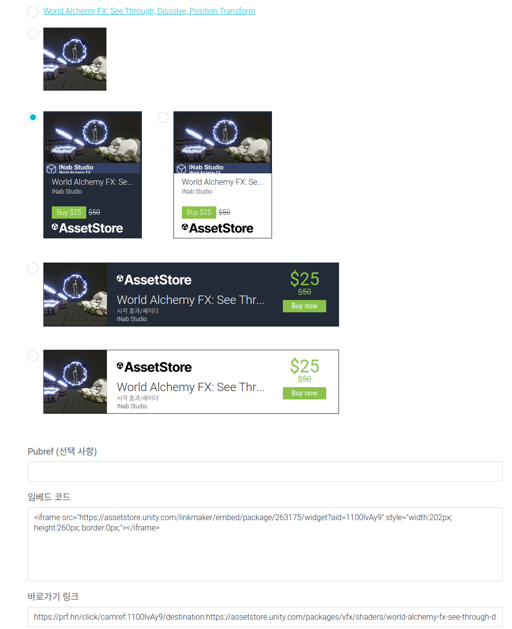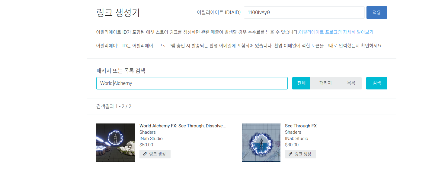 따라서 에셋스토어 메인페이지든, 특정 에셋페이지든 AID가 삽입된 링크어야 정상적으로 데이터를 처리할 수 있습니다.