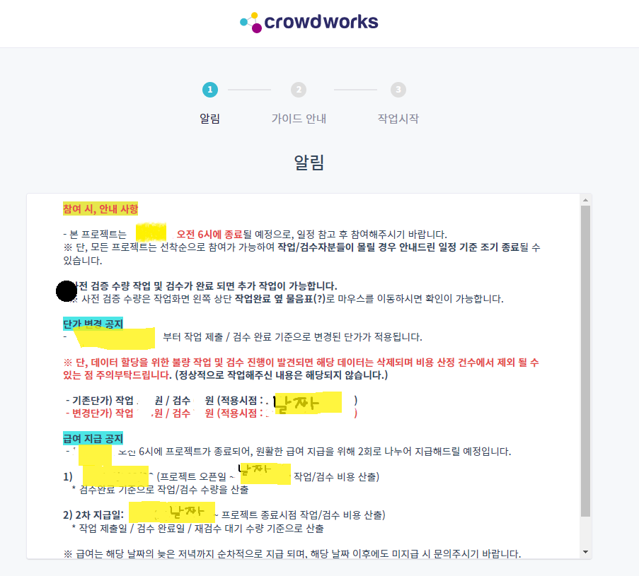 보시다시피 크라우드 웍스에서 신청하여했고,