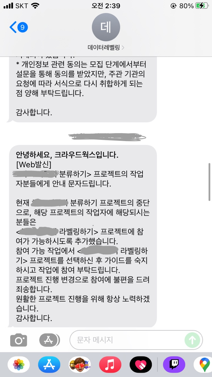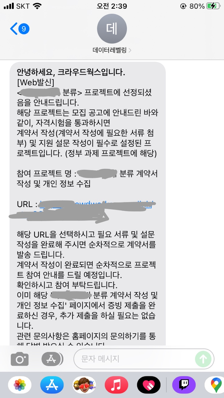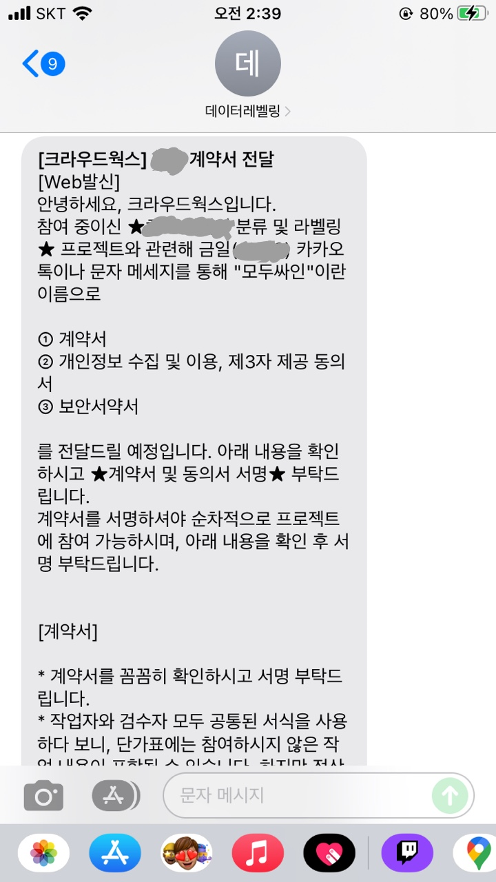 대충 모두 싸인을 통해 프리랜서 계약서로 알림 톡이 온다. 그러고 프로젝트를 진행해달라는 문자가 온다.