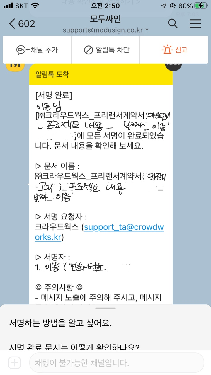 그러고 나서 추후에 모두 싸인이라는 알림 톡이 와 본격적인 계약서를 작성한다.