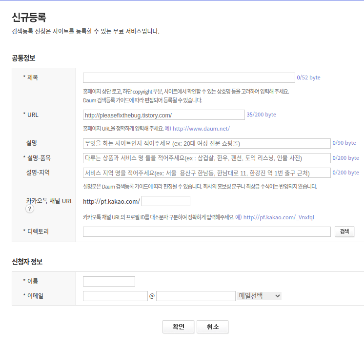 [Daum 검색등록] 검색등록페이지에서 신청하신 내용입니다