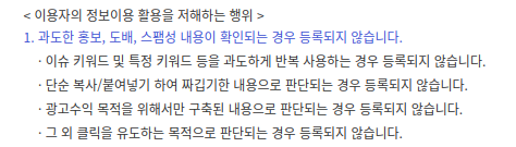과도한 홍보, 클릭유도, 도배, 게시글 짜깁기등으로