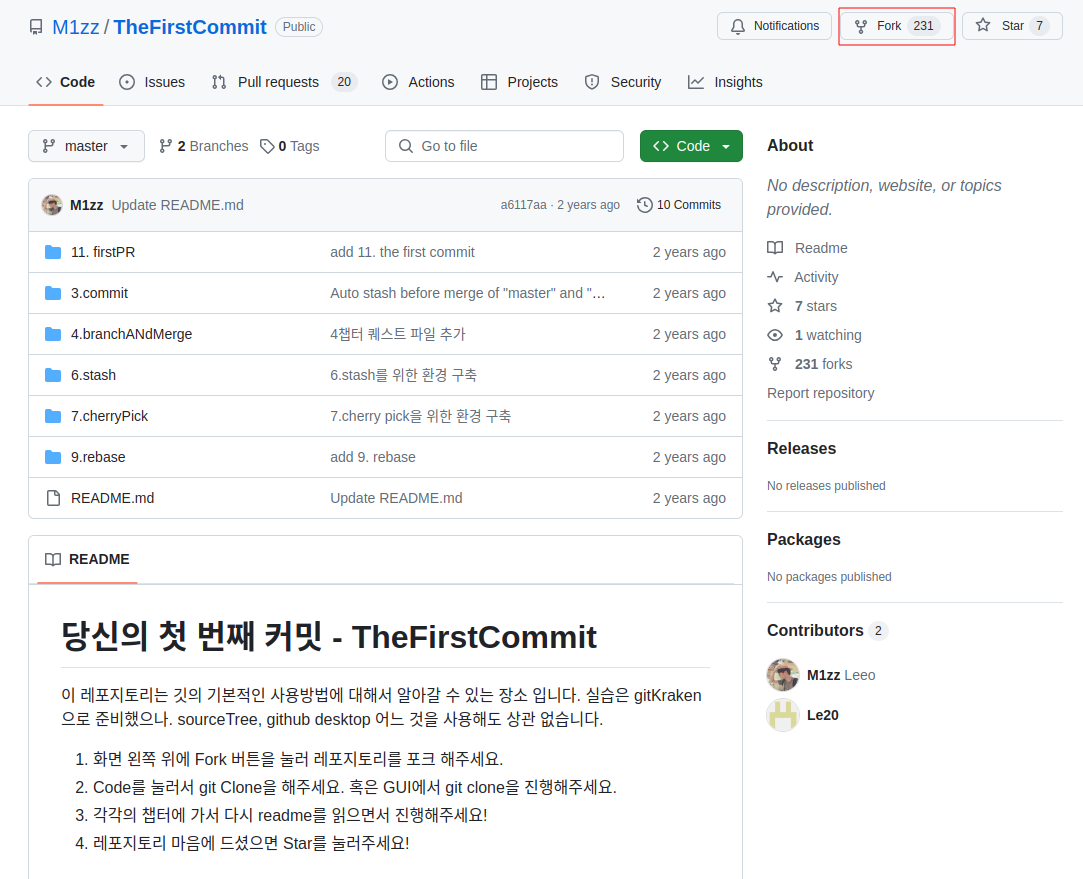 사이트에 들어가서 오른쪽 상단에 있는 Fork를 해줍니다.