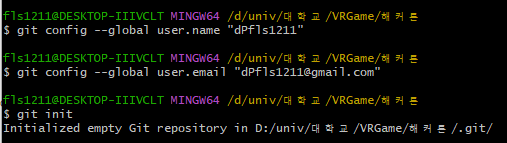 하여 git 폴더를 만들어 주고