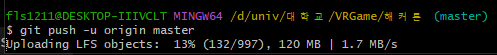 보기엔 총 용량 1gb가 넘던데,, lfs리포지토리 용량이 1gb가 넘으면 유료버전으로 가입해야한다 길래 안될까봐 겁먹었다...