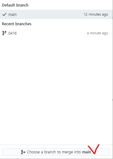 그러고 합쳐질 master(main)로 돌아가서, 아래의 'Choose a branch to mergo into main'을 클릭하고