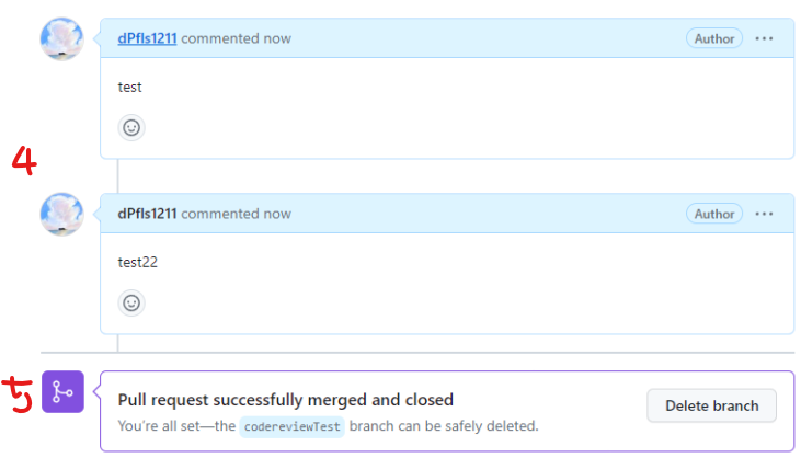 2번에는 master(main)에 merge할지 정하는 것이다.
