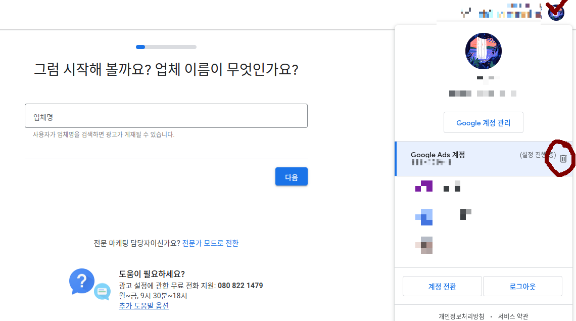 만약 전문가 모드로 전환이 보이지 않는다면 이미 계정이 있거나 한거라서 오른쪽 처럼 해당 계정을 삭제해주면 될거같아요