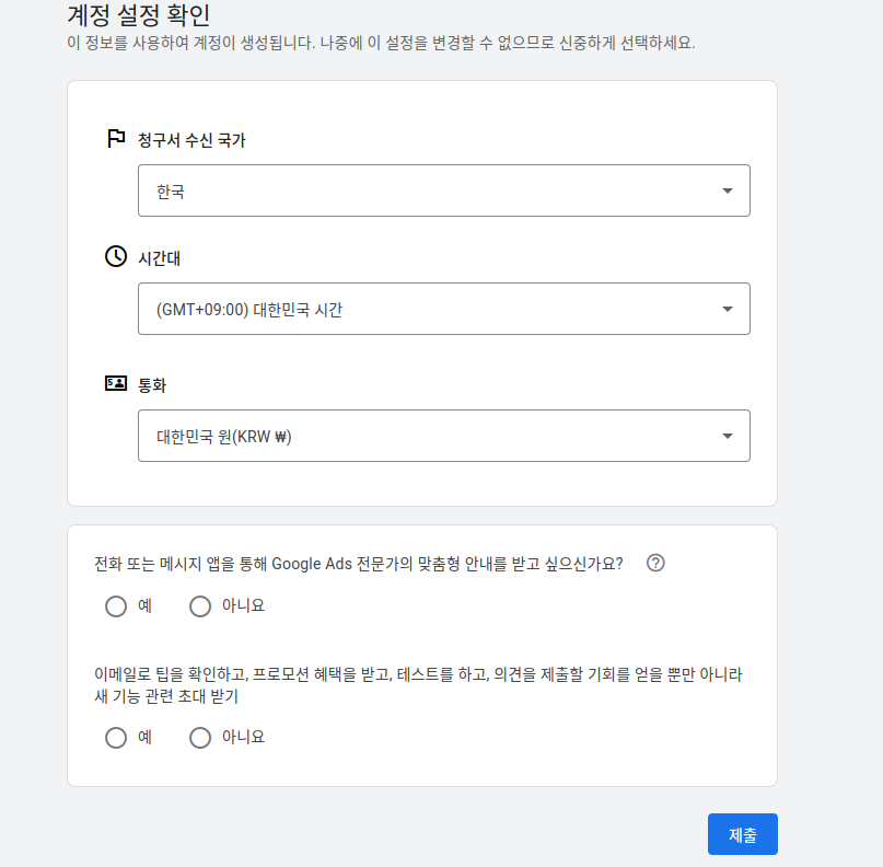 그러고 계정 설정 확인을 완료 해준뒤에 제출 해주면