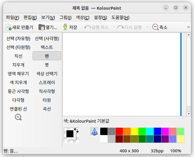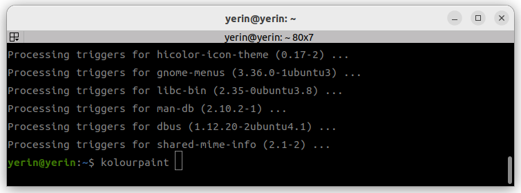 2. 터미널 창에 kolourpaint 를 입력하여 실행 시켜 줍니다