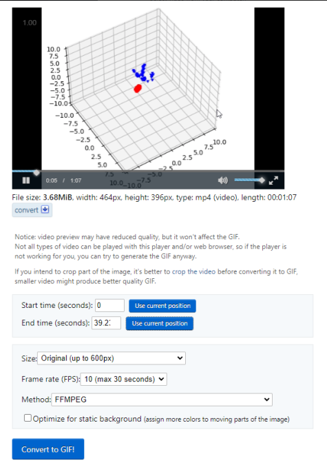그러고 나서 Convert to GIF! 를 클릭하여 GIF로 바꿔줍니다.