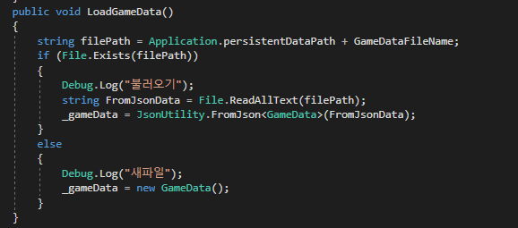 해당되는 파일 위치에 gameData를 덮어 씌운 기로 저장하는 방식입니다.