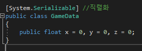 그다음은 GameData.cs를 다뤄보겠습니다.