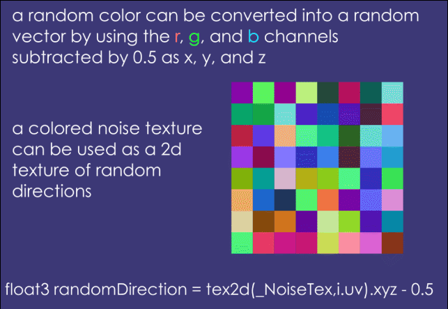 간단하게 설명하면 텍스쳐에 노이즈 값을 추가하여 보는 방향에 따라 다른 노이즈 값을 보여주는 것입니다.